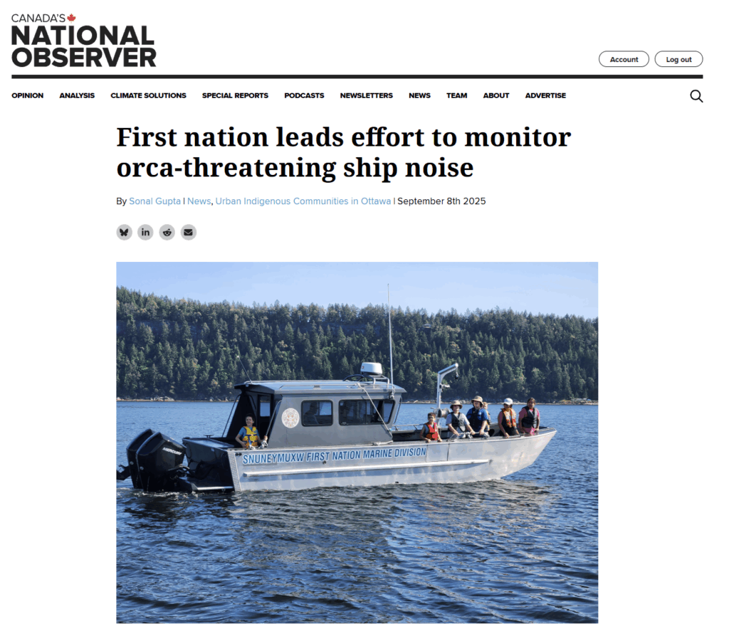 Snuneymuxw Marine Division was featured in an article in the National Observer, featuring our SFN Marine Division’s work monitoring underwater noise from ships and ferries. Read the full article here: […]